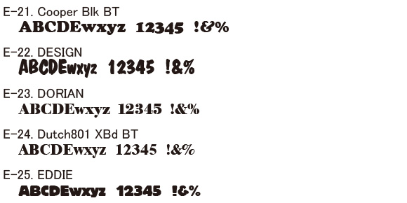 書体の指定は「J-」「E-]から始まる番号で指定いただけば結構です。