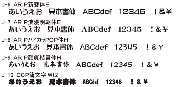 書体の指定は「J-」「E-]から始まる番号で指定いただけば結構です。